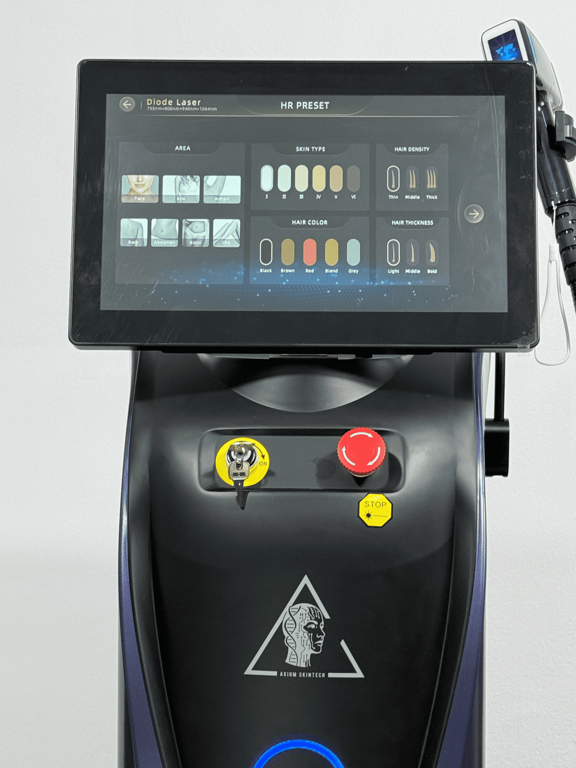 Echipamentul combină 4 lungimi de undă (755 nm + 808 nm + 940 nm + 1064 nm), acționând simultan asupra tuturor straturilor unde se formează firul de păr. Rezultatul este o epilare eficientă, sigură și uniformă, indiferent de culoarea firului, densitatea pilozității sau fototipul pielii (I–VI Fitzpatrick).